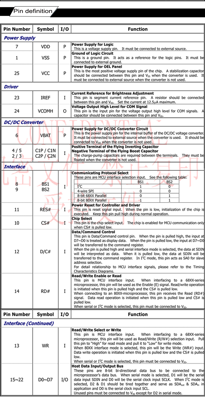 This 0.68" OLED is a Mini graphic OLED display module which is made of 96x32 pixels white OLED,it is with outline dimension of 19.7 × 12.70 mm and AA size 16.3 × 5.42 mm, it builts in SSD1306 controller ic,communicates via 6800/8080 4-bit/8-bit parallel and I2C/4-wire serial interface.this mini COG OLED display is very thin,lightweight and low power consumption since no backlight is needed;so it has such high contrast,extremely operating temperature,applied for any embedded systems,wearable device,industrial devices,medical and hand-held devices,personal care appliance, voice recorder pen and securit,mp3,etc.
